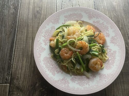プリプリのエビがたっぷりの焼きそばです ナンプラーの風味がたまりません